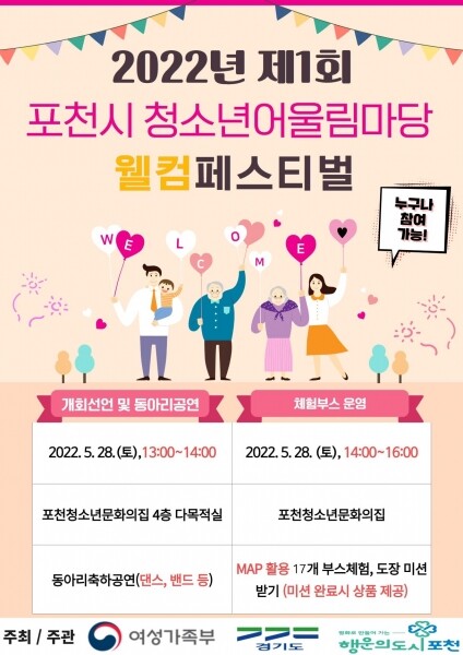 포천청소년문화의집 관계자는 “청소년들이 직접 참여하고 함께 운영하는 제1회 포천시 청소년어울림마당에 청소년들의 많은 관심과 참여를 바란다”고 전했다.