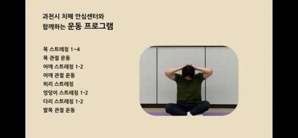 과천시 치매안심센터 유튜브 채널에서 원하는 시간에 영상을 보면서 운동을 하면 된다.