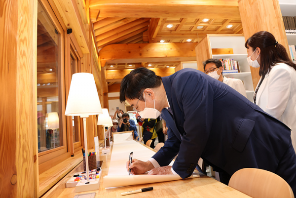 원당샘을 지혜의 샘으로 삼아 세대가 공감하고 전통과 역사를 살펴 미래를 열며 한옥의 기와처럼 주민들을 함께 이어주는 도서관으로 거듭나길 바란다”고 말했다.