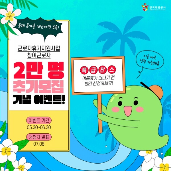 연중 풍성하고 다양한 프로모션이 준비되어 있는 만큼 아직 근로자 휴가지원사업에 참여하지 않는 중소기업 및 소상공인이라면 참여 신청을 서두르는 게 좋겠다.