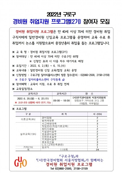 교육은 6월 20일부터 22일까지 3일간 한국경비협회 서울지방협회에서 진행된다.