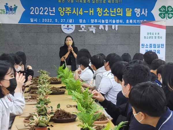 또한 신입회원에게 4-H클로버 타이슬링을 수여하는 입단식을 가져 4-H회원으로서 자부심과 긍지를 가지며 활동할 수 있는 계기를 마련했으며 2050 탄소중립 선언과 결의대회를 통해 탄소중립 실천운동 의지를 다졌다.