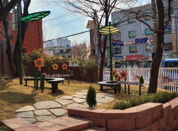 노량진초 담장에는 ‘서로에게 힘이 되는 좋은 친구가 되자‘ 등 에티켓 디자인 사인 설치와 함께 다소 어두웠던 학교 후문 유휴공간은 자연과 어우러지는 커뮤티니 공간으로 재탄생 했다.