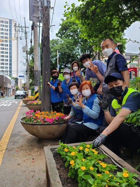 참여자들은 간석동 애향 어린이 공원을 중심으로 간석로 일대 화단을 정비하고 메리골드 등 여름 초화 5종 1,000여 본을 심었다.
