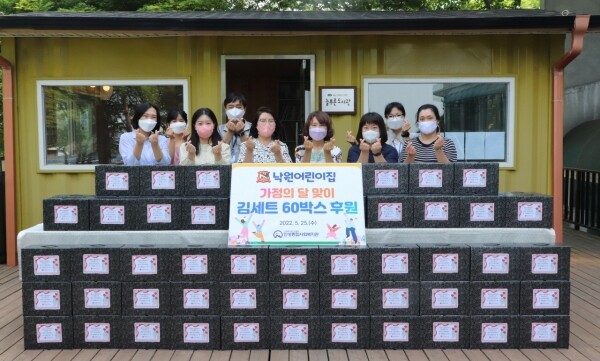 이번 전달식은 낙원어린이집 교사와 학부모가 자발적으로 저소득 가정에 나눔을 실천하기 위해 김 세트 60상자를 마련해 이뤄졌으며 후원물품은 지역 내 저소득 가정에 배부될 예정이다.