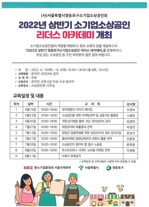 리더스 아카데미는 영등포구소기업소상공인회가 주최하는 지역 내 소상공인 역량 강화 프로그램으로 지난 2009년 첫 문을 연 뒤 매년 100여명의 수료생을 배출하며 골목 상권의 경쟁력과 자생력 제고에 일조해오고 있다.