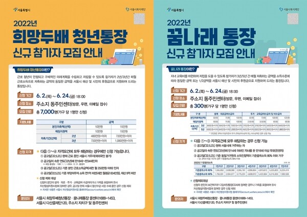 구 관계자는 “이번 통장사업이 근로청년과 저소득 가구의 경제적 자립과 자산형성에 많은 도움이 되길 바란다”며 “앞으로도 경제적으로 어려움을 겪는 구민들에게 실질적으로 도움이 될 수 있는 다양한 사업을 펼쳐 나가겠다”고 말했다.