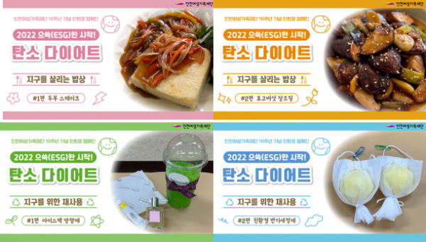 ‘으쓱한 시작 탄소 다이어트’의 주요내용은 저탄소 건강 채식 레시피와 생활쓰레기를 재사용 할 수 있는 방법으로 생활 속 자원순환 실천을 돕도록 총 4편 제작됐다.