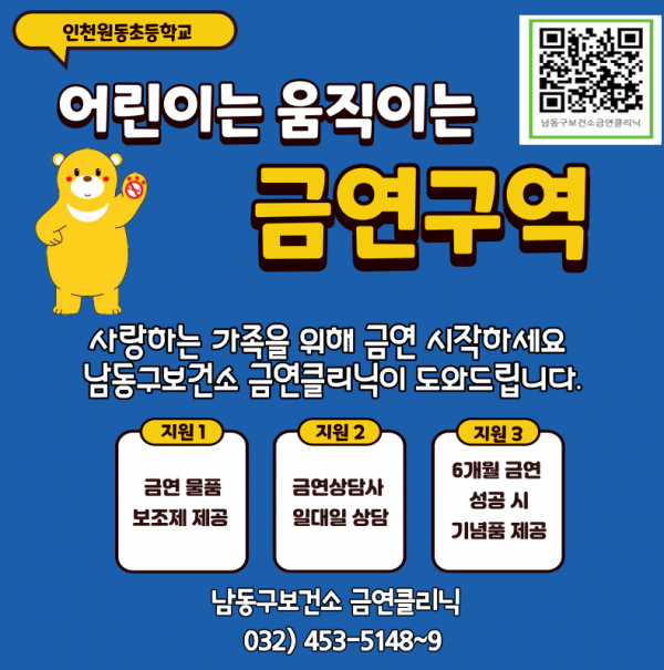 남동구보건소는 흡연 예방 주간을 지정해 아동의 안전하고 건강한 통학 환경을 조성하고자 각 학교에서 아동 금연 서포터즈를 선발해 등굣길 주변 흡연 예방과 금연 홍보를 실시하고 있다.