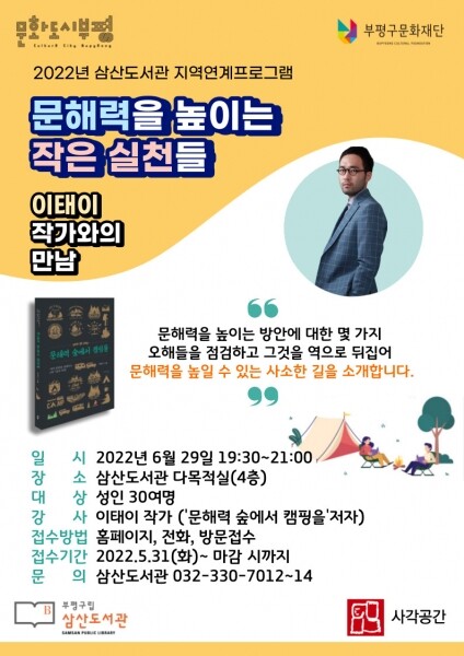 오는 29일 오후 7시 30분 삼산도서관 4층 다목적실에서 진행하며 참석자는 성인을 대상으로 모집한다.