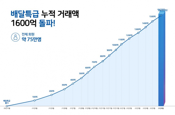 경기도주식회사는 지난 6월 1일 수요일 기준 배달특급의 총 누적 거래액이 1,600억원을 넘어섰다고 2일 밝혔다.