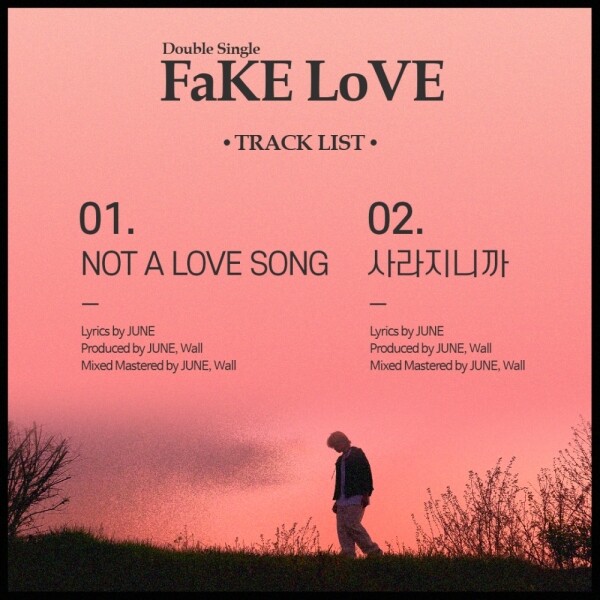 JUNE의 첫 번째 더블 싱글 앨범 ‘FaKE LoVE’의 발매를 단 하루 앞둔 2일 JUNE의 소속사 플래니스트는 “JUNE의 첫 더블 싱글 앨범 ‘FaKE LoVE’에 그가 작사, 작곡에 참여해 진심을 담은 두 곡 ‘Not a love song’과 ‘사라지니까’가 담긴다”고 밝혔다.