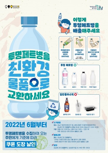 현재 강남구는 선착순 150명에 한해 도장 10개가 찍힌 쿠폰을 2만원 상당의 친환경 물품 키트로 교환해주는 이벤트를 진행 중이다.
