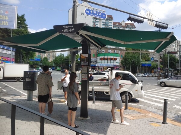구는 6월초 통행량이 많은 횡단보도 9곳에는 그늘막을, 용마폭포공원에는 쿨링포그를 추가 설치한다.