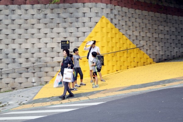 이에 구는 지난해부터 단계적으로 기존 미끄럼방지 포장을 노란색 싸인블록 형태로 재정비하고 있다.