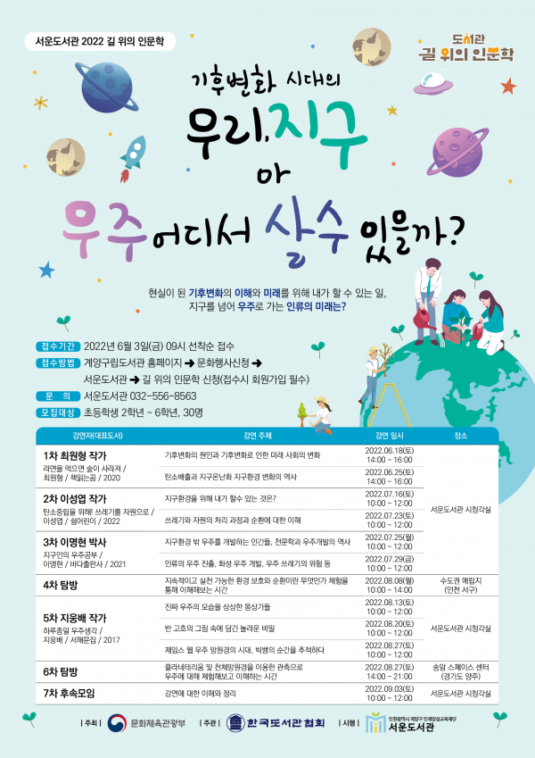 이번 강연은 초등학생 2학년~6학년을 대상으로 오는 3일부터 계양구립도서관 누리집을 통해 선착순으로 30명을 모집한다.