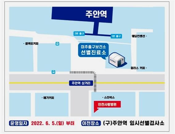 이전된 보건소 선별진료소는 주안로 95-19번지로 주안역 남광장에 위치해 있으며 운영시간은 평일은 9시부터 12시, 오후 2시부터 오후 6시까지 운영한다.