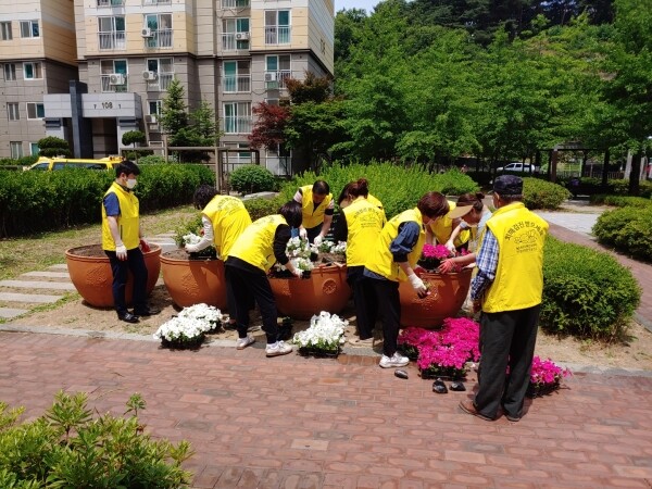 치매 친화적 환경 마을로 지정된 아파트단지를 꽃으로 단장하면서 심리적 치유와 함께 정서적 안정감을 심어주고 고립됨을 방지하겠다는 것. 시가 지난 치매환자 치유를 위해 2020년부터 이어오고 있는‘나눔꽃밭’조성 사업은 올해도 벌써 10회에 걸쳐 진행됐다.