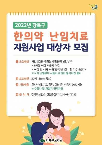 박겸수 강북구청장은 “이번 사업을 통해 난임부부들의 경제적 부담이 경감되고 출산에 대한 사회적 관심이 높아질 것으로 기대된다”며 “아이를 갖고 싶지만 난임으로 고민하고 있는 가정에 실질적인 도움이 되길 바란다”고 말했다.
