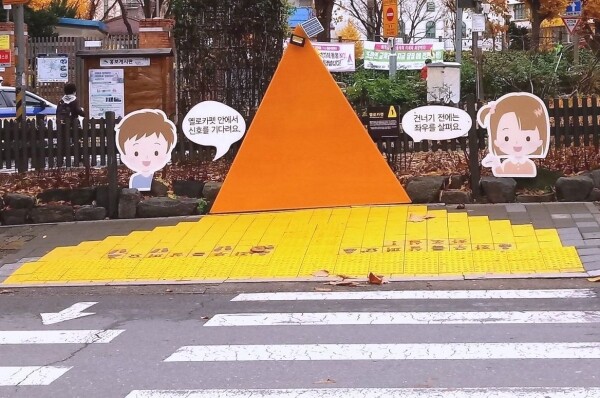 어린이들이 노란색으로 구분된 안전한 지역에 머물도록 해 교통사고를 예방할 수 있다.