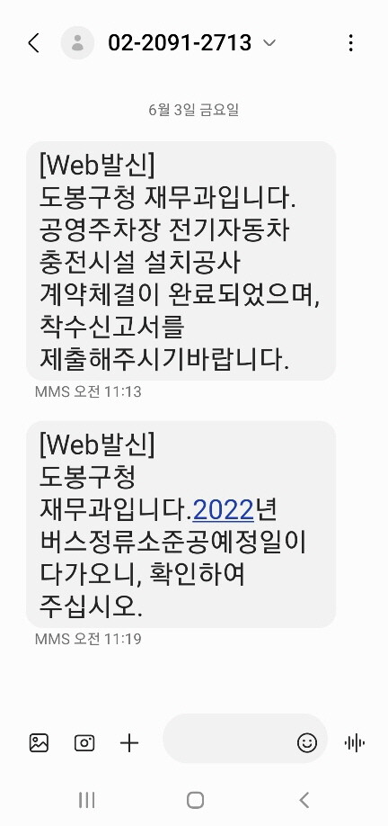 이동진 도봉구청장은 “미리 필요한 사항과 일정을 알려주어 혹시라도 모를 계약 과정이 누락되거나 하는 사고들을 예방하기 위해 문자 알림을 시행하게 됐다 계약 업체들이 문자알림 서비스를 원활히 이용하실 수 있도록 계약 담당자들을 통해 적극적으로 안내하겠다”고 말했다.