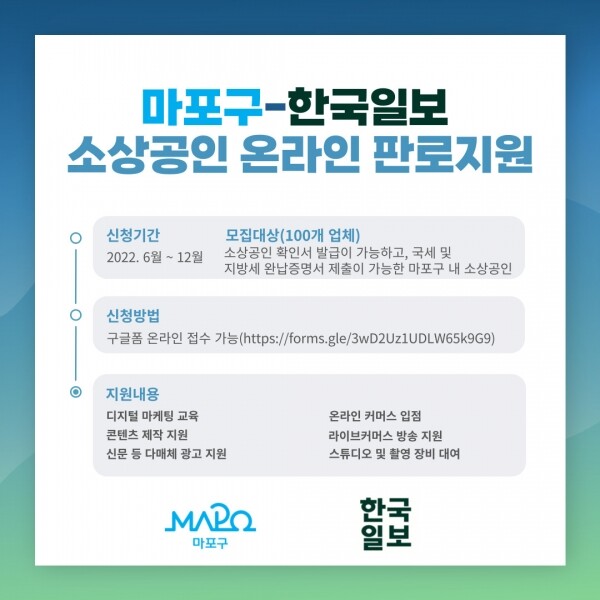 지원 대상은 온라인 마켓 입점을 희망하는 마포구 내 소상공으로 소상공인 확인서 발급이 가능하고 국세 및 지방세 완납증명서 제출이 가능한 업체다.