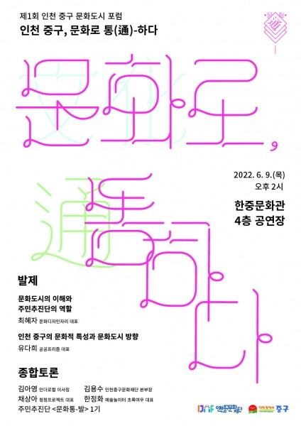 마지막으로 2부에서는 ‘인천 중구만의 문화도시란 무엇인가?’라는 주제로 종합토론이 이어진다.