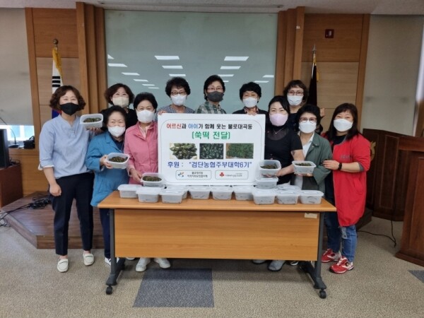 이세한 동장은 “모두가 힘든 시기에 이웃을 위해 따뜻한 마음을 전해주신 검단농협주부대학6기 수강생들께 진심으로 감사드린다”며 “전달받은 물품은 따뜻한 마음을 담아 이웃에게 잘 전달되도록 노력하겠다”고 말했다.