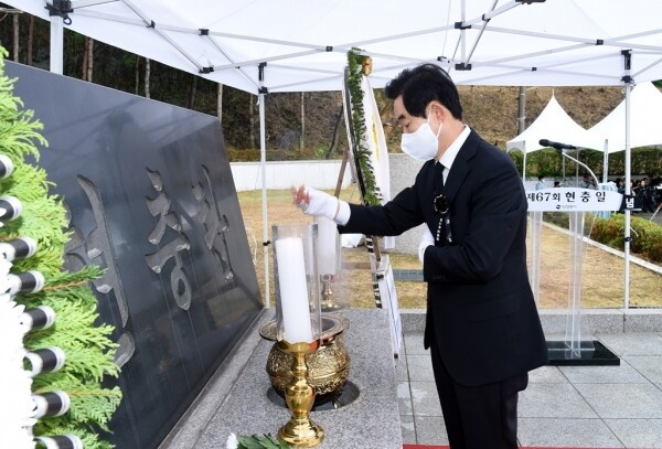 추념식은 6일 오전 10시 추념 사이렌을 시작으로 순국선열 및 호국영령에 대한 추모 묵념, 추념사, 현충의 노래 제창 등의 순서로 진행됐다.