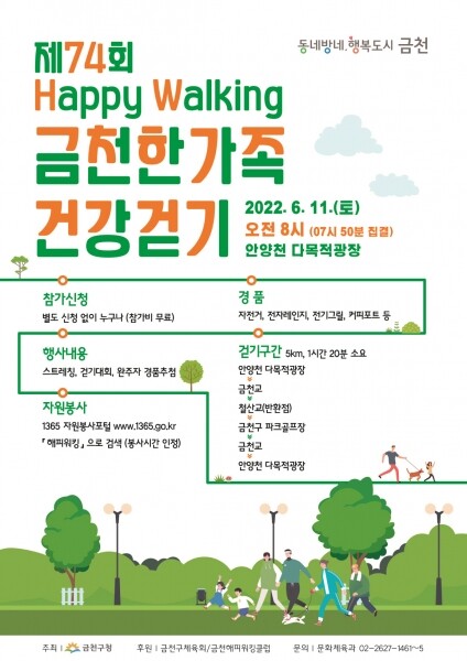이번에 개최되는 건강걷기 대회는 인원 제한 없이 금천구민이면 누구나 참여할 수 있다.