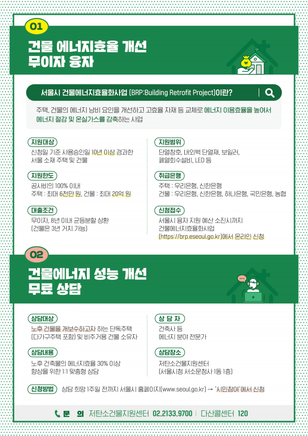 이 외에도 노후 단독주택과 비주거용 건물을 대상으로 건축사 등 에너지 분야 전문가가 1:1 맞춤형 상담도 제공하고 있다.