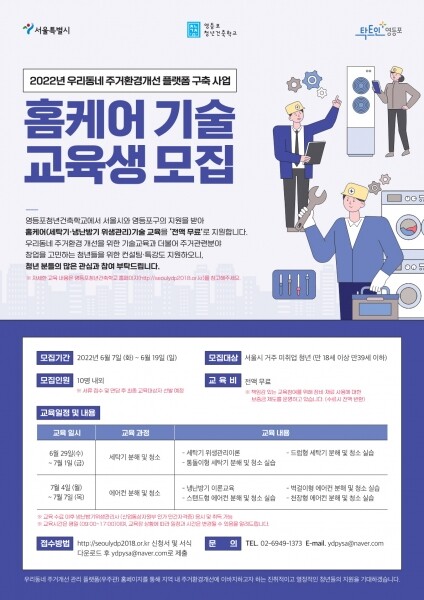 채현일 영등포구청장은 “이번 교육을 통해 최근 각광받고 있는 홈케어 분야의 전문 기술을 배우고 취·창업의 새로운 기회를 찾을 수 있길 바란다”며 “앞으로도 많은 청년들이 자신의 역량을 키우고 꿈을 펼칠 수 있도록 다양한 청년 지원 정책과 교육들을 마련하겠다”고 전했다.