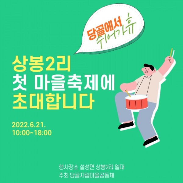 당골자립마을공동체 이창열 이장은 “마을주민이 하나 되어 준비한 축제 ‘당골에서 쉬어가휴’에 많은 시민이 자리해 시골의 정겨움과 봄꽃의 아름다움, 동심을 떠올리는 즐거운 시간을 보내시길 바란다며 절대 후회하지 않으실 거다”고 말했다.