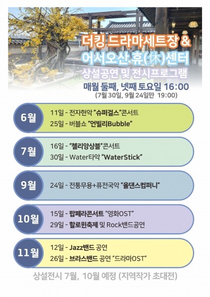 오산시 관계자는 “드라마세트장이 오산시 대표 관광명소 뿐만 아니라, 오산시민에게 위안과 휴식을 줄 수 있는 공연장이 될 수 있도록 최선을 다하겠다”고 밝혔다.