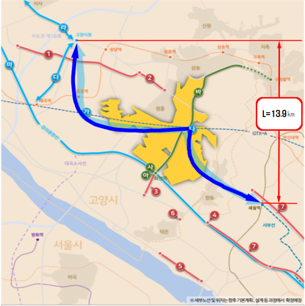 이 노선은 서울도시철도 3호선, 6호선, GTX-A노선과 연계, 고양권역과 서울시를 연결하는 광역 대중교통 축의 중추 역할을 수행할 것으로 전망된다.