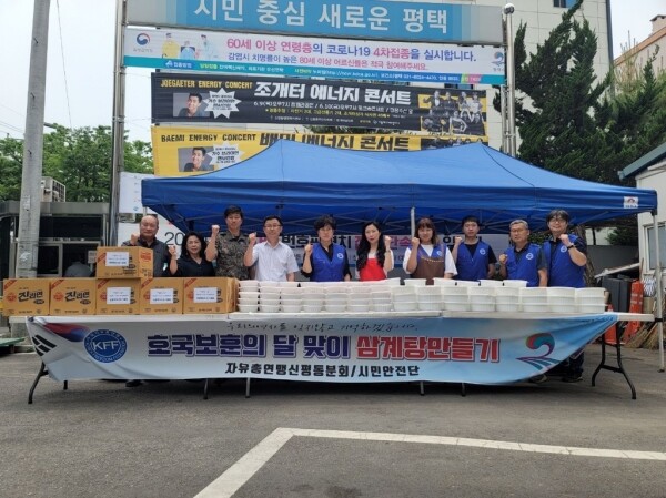 한상오 신평동장은 “호국보훈의 달을 맞이해 아침부터 모여 이웃들에게 따뜻한 정을 나누어주신 자유총연맹 신평동 분회에 감사드리며 정성껏 준비한 삼계탕은 이웃들에게 잘 전달하겠다”고 말했다.