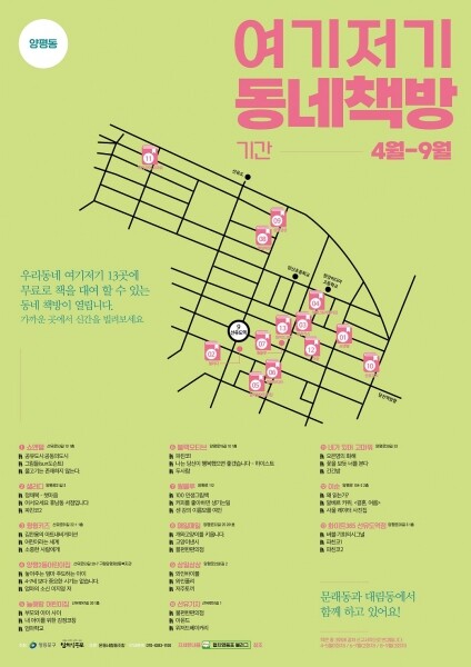 그 결과 양평동에서 시작된 동네책방은 올해 문래동과 대림동으로 확대되어 현재 총 21개소가 운영 중이다.