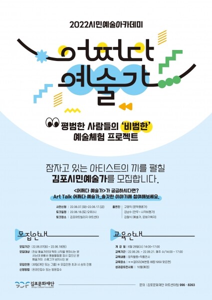 [뉴스써치] 김포문화재단은 오는 6월 7일부터 18일까지 시각예술분야 시민예술아카데미 ‘어쩌다 예술가’ 프로젝트에 참여할 김포시민을 모집한다고 밝혔다.