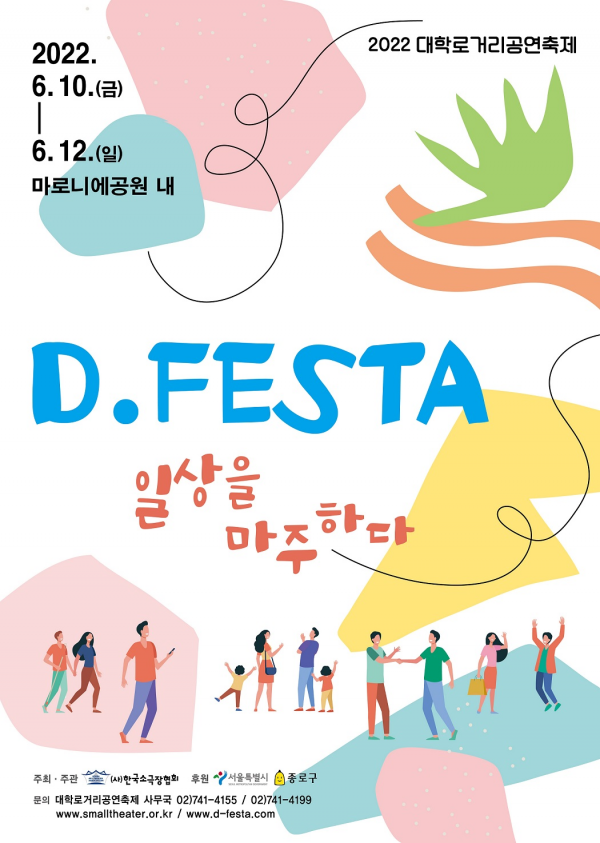 한국소극장협회가 주최하고 종로구가 후원하는 이번 축제와 관련해 더욱 자세한 내용은 대학로거리공연축제 누리집에서 확인하면 된다.