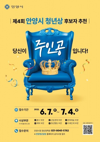 안양시가 7월 4일까지‘안양시 청년상’후보자를 추천받는다.
