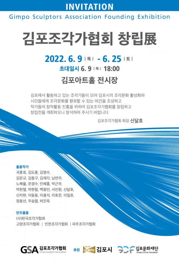 김포에서 활동하고 있는 조각가 26명이 모여 올해 결성된 김포조각가협회는 올림픽조각공원 조성의 기반을 다진 한창조 작가, CICA 미술관을 설립·운영중인 김종호 작가, 한국 현대 조각회 회장을 역임한 이일호 작가, 서울시립대 환경조각학과 박헌열 교수 등 원로 조각가를 비롯한 중진, 청년, 신진 세대를 아우르는 작가들이 골고루 참여하고 있다.