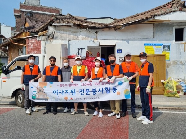 이날 활동은 혼자서 이사할 수 없고 경제적 여건이 좋지 않아 도움이 절실히 필요한 독거노인 가구를 위해 센터 직속봉사단 ‘사나래봉사단’과 ‘인천항보안공사 나누미봉사단’의 협업으로 추진됐다.