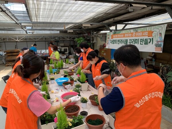 이날 주민자치회장, 주민자치위원, 일산2동장 등 20여명은 화훼단지에서 직접 화분을 제작했으며 30개의 반려식물 꾸러미를 만들어 사회복지법인을 통해 일산2동 어르신들에게 전해드렸다.