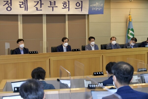 이 자리에서 문 구청장은 “남은 임기 동안 민선 8기의 성공적이고 편안한 출발을 위해 원활한 업무 인수인계에 매진하겠다”며 “직원들도 전혀 불편하게 생각하지 말고 새 구청장 입장에서 업무를 추진해 달라”고 당부했다.