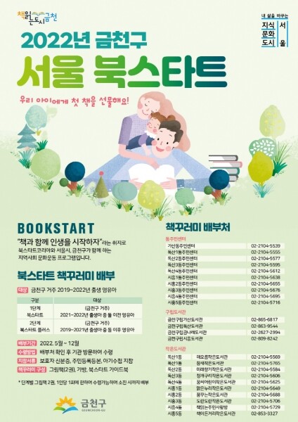 금천구는 2019년부터 북스타트 사업의 하나로 구에 거주하는 모든 영유아와 양육자를 대상으로 단계별 책꾸러미을 지원해왔다.