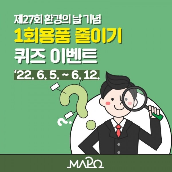 구 관계자는 “이번 퀴즈 이벤트를 통해 일회용품 사용 줄이기에 조금 더 관심 가져 주시기를 바란다”며 “마포구도 일회용품 줄이기 문화가 정착될 수 있도록 다방면으로 노력하겠다”고 말했다.