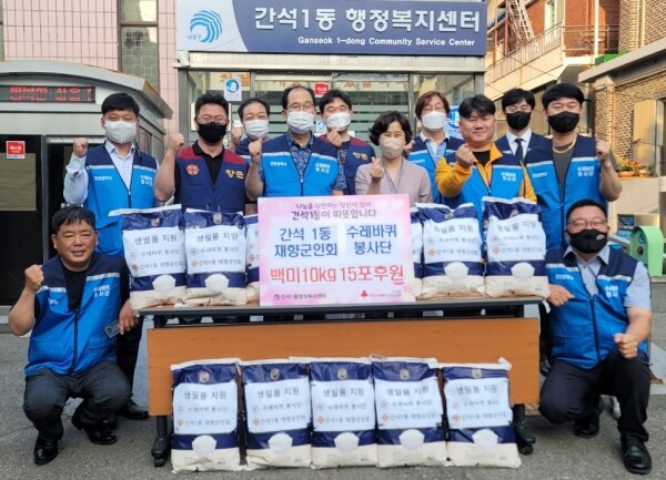 황수연 간석1동장은 “매년 어려운 이웃들을 위한 나눔에 솔선수범해 주시는 재향군인회와 수레바퀴봉사단에 감사드린다 기부받은 양곡은 보훈 가족과 홀몸 어르신에게 잘 전달하겠다”고 말했다.