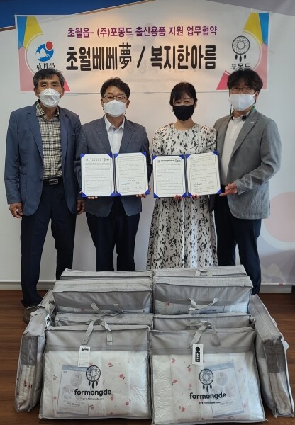 이날 협약의 첫걸음으로 포몽드는 250만원 상당의 침구 10세트를 기탁해 초월읍 관내 영유아 아동에게 소중히 쓰여질 계획이라고 전했다.