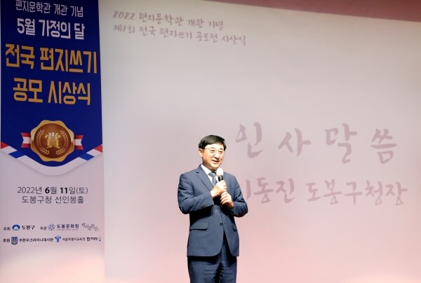 이동진 도봉구청장은 “5월 가정의 달을 맞아 열린 전국 편지쓰기 공모전에서 우크라이나에 평화의 메시지를 보내거나, 평소 전하지 못했던 진심을 담은 편지들이 많이 접수됐다 조금은 느린 편지를 통해 주변을 돌아보고 삶의 의미를 되새기는 시간이 되셨길 바라며 수상하신 모든 분들에게 축하 인사를 전한다”고 말했다.