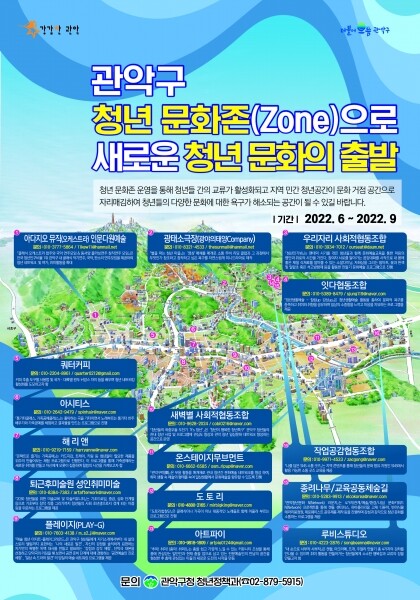 박준희 구청장은 “청년 문화존운영을 통해 청년들 간의 교류가 활성화되고 지역 민간 청년공간이 문화 거점 공간으로 자리매김해 청년들의 다양한 문화 욕구 해소에 기여할 것으로 기대하고 있다”고 말했다.